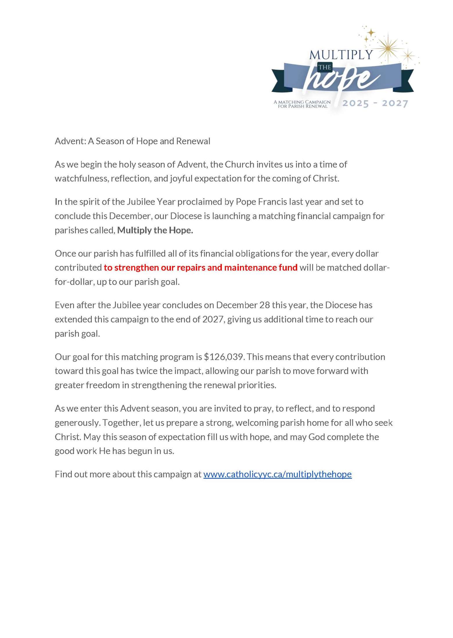 Thank you to all our parishioners from the Society St. Vincent de Paul